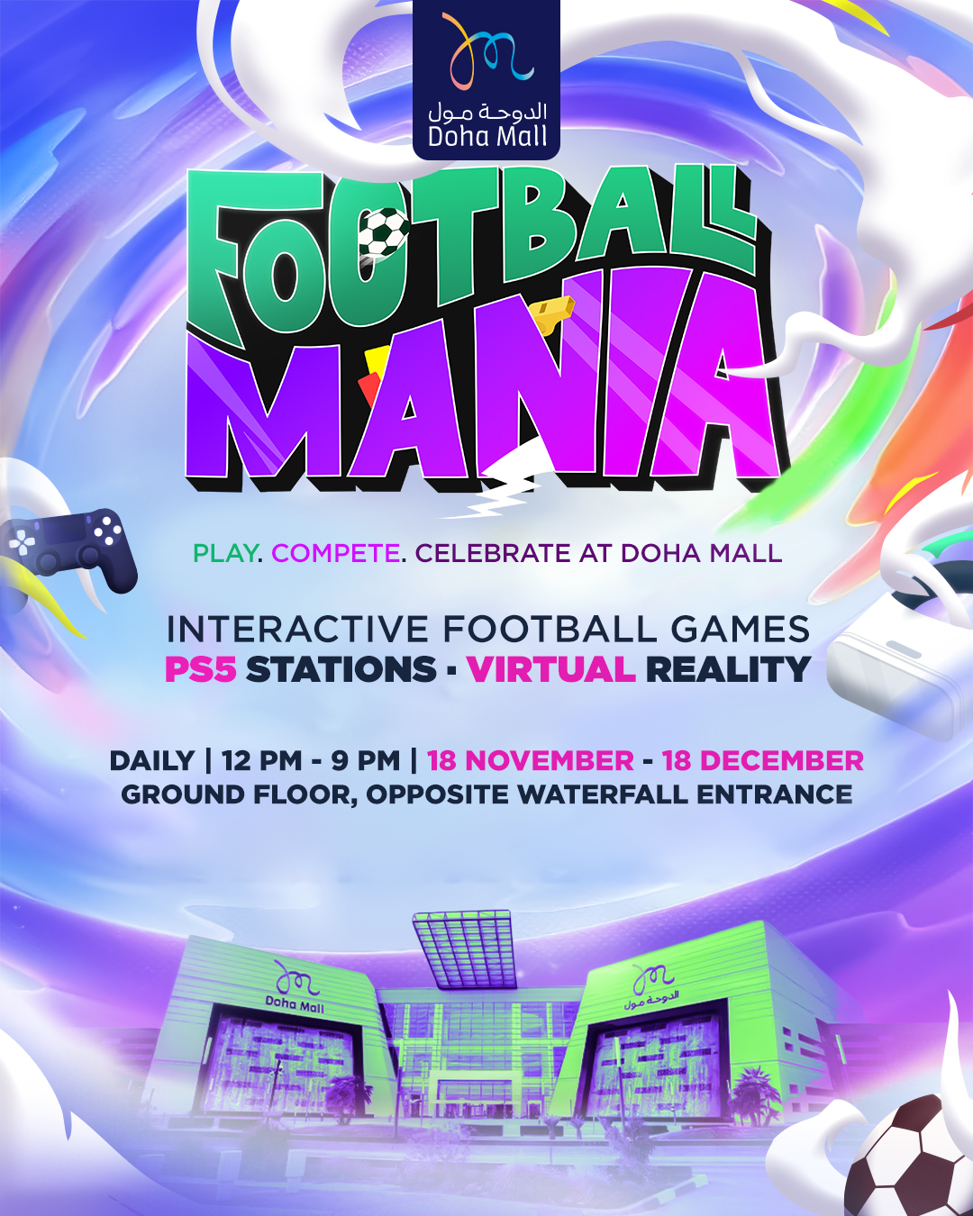 Football Mania brings a full month of immersive play, football-inspired challenges, and gaming excitement to Doha Mall. Designed for gamers, families, and football fans of all ages, this activation blends digital and physical experiences in one zone.